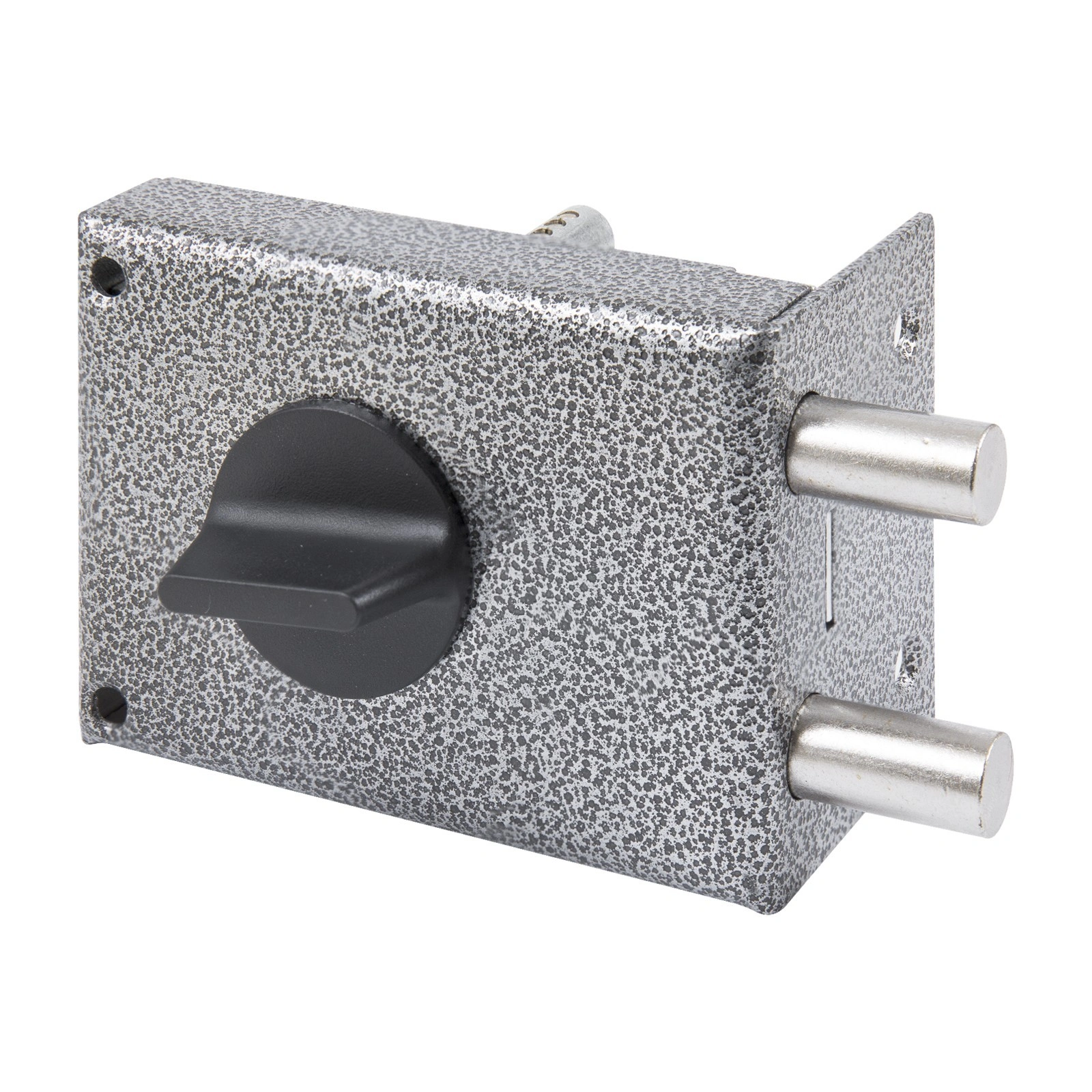 Засов из двух цилиндрических ригелей диаметром 12 мм, с максимальным вылетом 25 мм. Удаление ключевого отверстия - 60 мм.