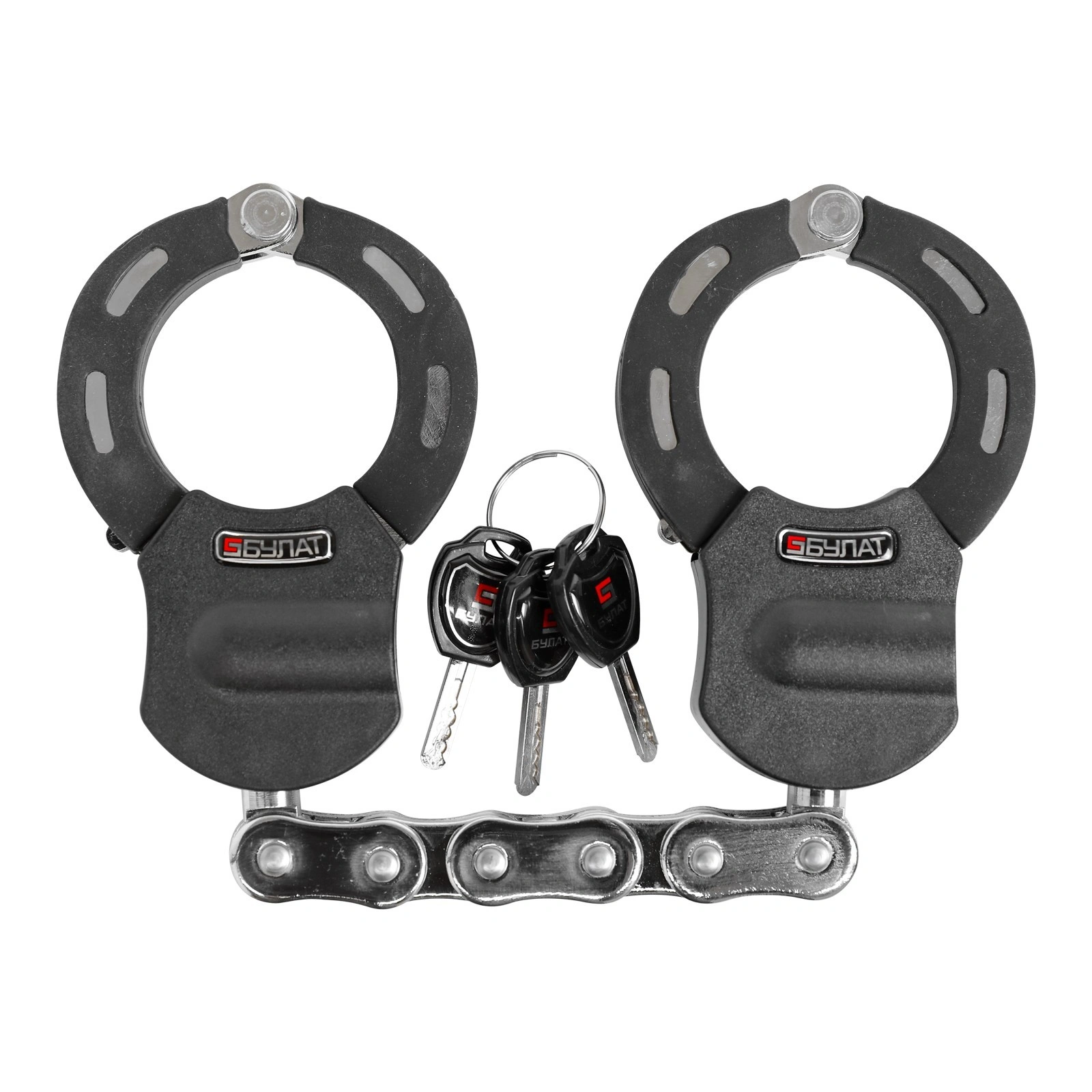 - Цепь- закаленная легированная сталь - Размер звена цепи 20х15 мм длина цепи 405 мм - Внутренний диаметр наручника - 56 мм Сертифицирован в РФ. Гарантийный срок 5 лет.