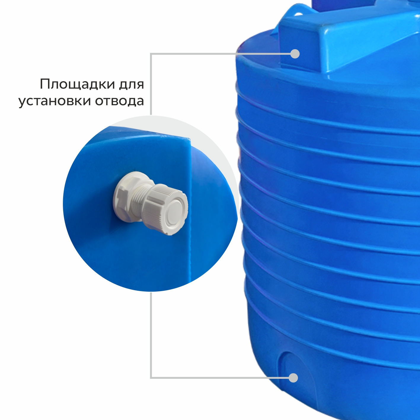 Вертикальная пластиковая емкость цилиндрической формы объемом 5000л предназначена для стационарного хранения питьевой воды, пищевых продуктов нефтепродуктов и химических веществ по согласованию.