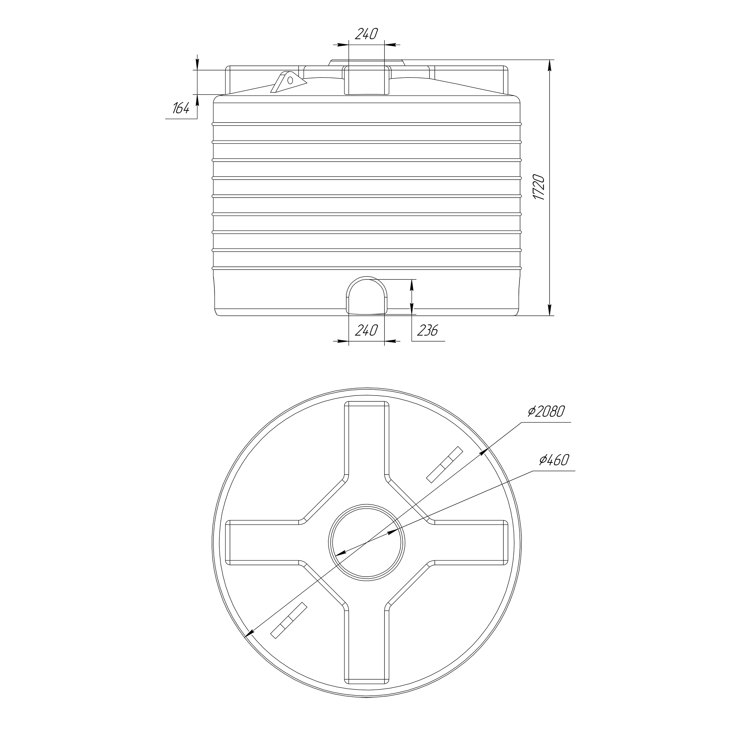 Бак 5000л комплектуется крышкой с «дыхательным клапаном». Емкость имеет специальные площадки для установки отводов и 2 проушины для транспортировки.