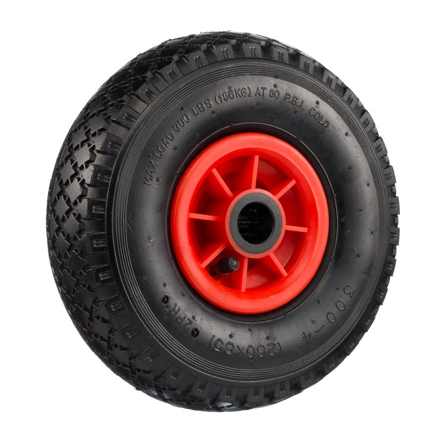 Колесо 1120-255-2, диаметр 255мм., пневмо, игольчатый подшипник (ось 25мм.). Грузоподъемность 150кг. Пневматические колеса под ось 20мм. Пластиковый сердечник. В оси колеса роликовый (игольчатый) подшипник. Грузоподъемность колеса 150кг., диаметр колеса 255мм., ширина колеса 82мм. Такой тип колёс отличается своей упругостью, мягкостью и тихой эксплуатацией. Может использоваться на рыхлых поверхностях. Пневматические колеса используются для смягчения возникающих при движении ударов, вибраций. Благодаря маневренности и проходимости пневматических колес, оборудование легко и плавно двигается, гася вибрации неровного полового покрытия. Поэтому их в первую очередь ставят на тележки для перевозки хрупкого груза и бытовой техники, а так же на тележки для перевозки воды. Они прекрасно подходят для передвижения не только по дорожным покрытиям, но и за их пределами: по грунту, траве, песку, щебню, снегу, грязи.