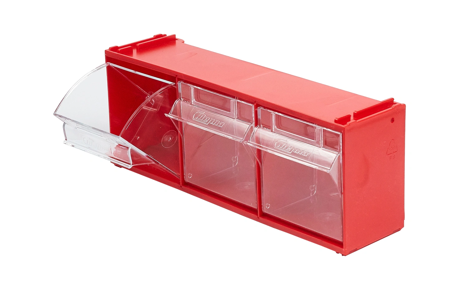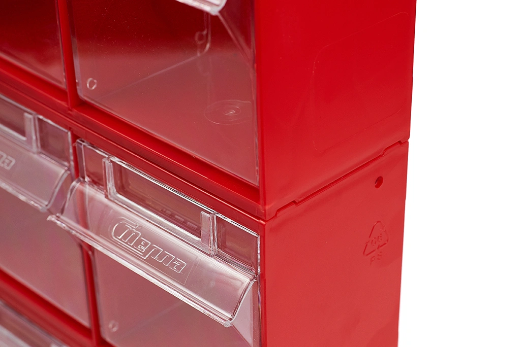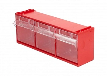 Короб откидной Стелла-техник F-300-3 (300х96х112мм.), красный, прозрачный, служит для хранения мелкоштучных предметов. Данная система хранения не подвержена случайному опрокидыванию. Откидные стандартные ячейки обеспечивают быстрый доступ к необходимым предметам. В случае необходимости полного высыпания или наполнения внутренние ячейки легко извлекается. Полезный внутренний размер ячеек 88х65х70мм. Специальный пластик, из которого выполнен короб, выдерживает значительные нагрузки и обладает оптимальной эластичностью. На основе данных коробов можно сформировать многоярусную систему хранения, выстраивая вертикально. Данный короб, через отверстия на задней стенке, легко можно прикрепить к стене или установить на специальные кронштейны (Артикул: Кронштейны-FOX-750). Обзорность содержимого сквозь прозрачные внутренние ячейки, наличие отсека для информационных бирок, легкое извлечение внутреннего короба для опустошения и наполнения, все это является неоспоримым преимуществом откидных коробов серии F. Температура эксплуатации от -10 до +70С.