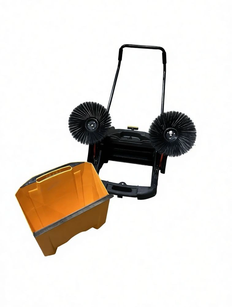 TOR GM98 - надежная и производительная подметальная машина с механическим приводом, созданная для эффективной уборки больших площадей как внутри, так и снаружи помещений. Неприхотлива в обслуживании, проста в управлении и не требует электропитания - идеальна для заводов, складов, торговых центров, ферм и других объектов с интенсивным загрязнением. Ширина уборки 105 см, производительность до 3680 м²/час, вместительный контейнер на 55 литров и регулируемая скорость основной щетки обеспечивают высокую эффективность при минимальных усилиях оператора. Где используется? Подходит для уборки производственных цехов, складских помещений, торговых залов, ангаров, гаражей, ферм, парковок, дворовых территорий и других объектов с твердым покрытием. Эффективна как в закрытых помещениях, так и на открытых площадках - обеспечивает чистоту без использования электроэнергии или топлива. Основные преимущества: Высокая производительность - до 3680м²/час благодаря ширине уборки 105см и мощной трехщеточной системе. Три щетки - две боковые убирают мусор вдоль стен и бордюров, основная щетка длиной 48 см собирает отходы в контейнер. Регулируемая скорость основной щетки - позволяет адаптировать работу под тип поверхности и уровень загрязнения. Вместительный контейнер - объем 55 литров снижает частоту опустошения при уборке больших площадей. Эргономичная рукоять - регулируется по высоте и углу наклона, складывается для удобного хранения и транспортировки. Удобство перемещения - складная конструкция и дополнительная ручка на корпусе позволяют легко перевозить машину в багажнике или на тележке. Надежность и долговечность - механический привод не требует технического обслуживания, устойчив к перегрузкам и работает в любых погодных условиях. Комплектующие (при необходимости замены): - Боковая щетка для подметальных машин G98/G100 - артикул 1051224 - Основная щетка для подметальных машин G98/G100 - артикул 1051224