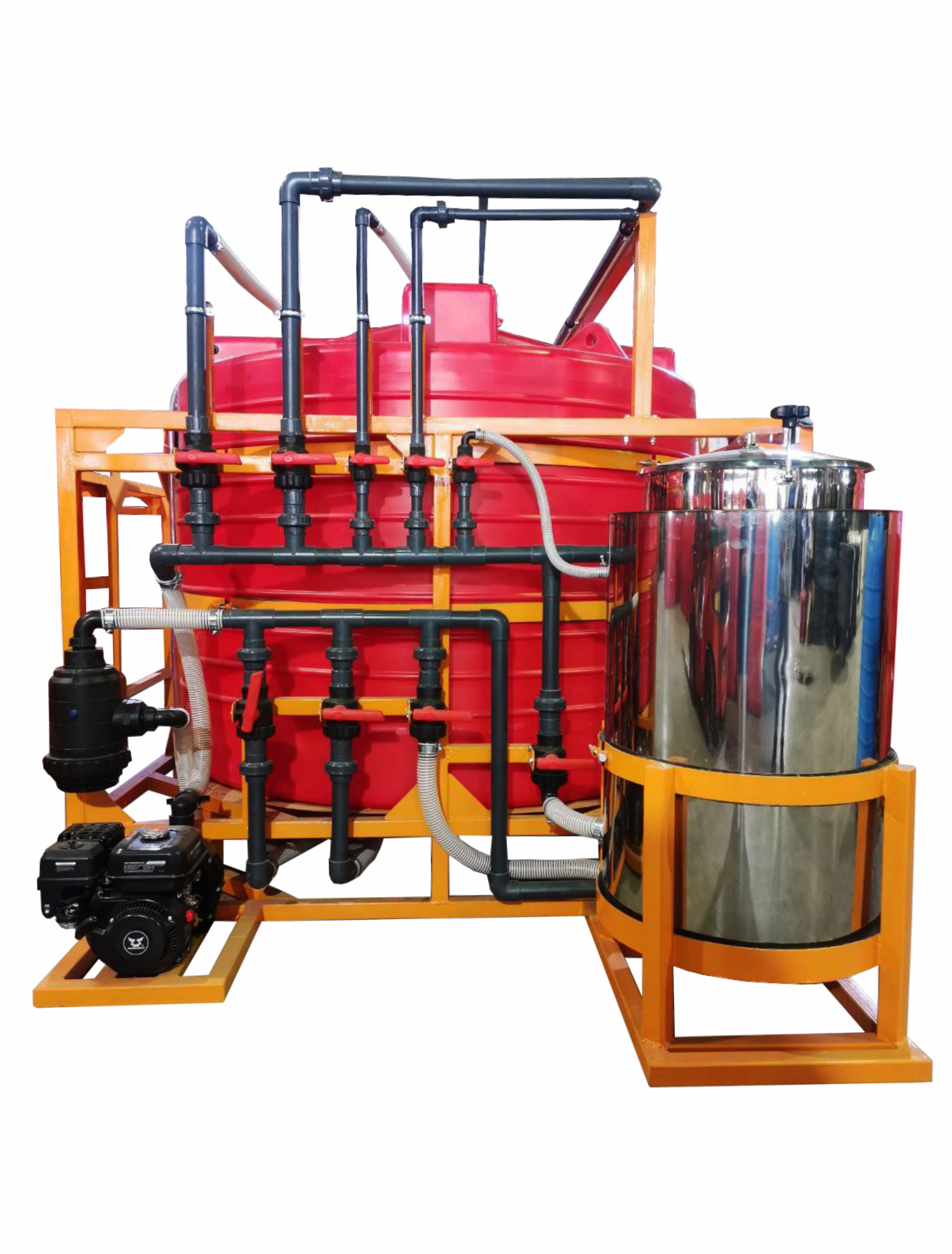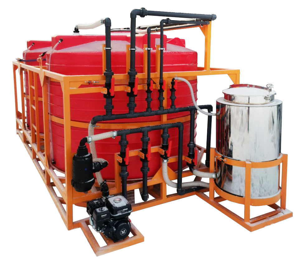 Мобильный растворный узел предназначен для приготовления и транспортировки растворов средств защиты растений (СЗР) и жидких комплексных удобрений (ЖКУ). Он устанавливается в кузов или прицеп автомобиля и может работать как в стационарных условиях, так и в процессе движения.