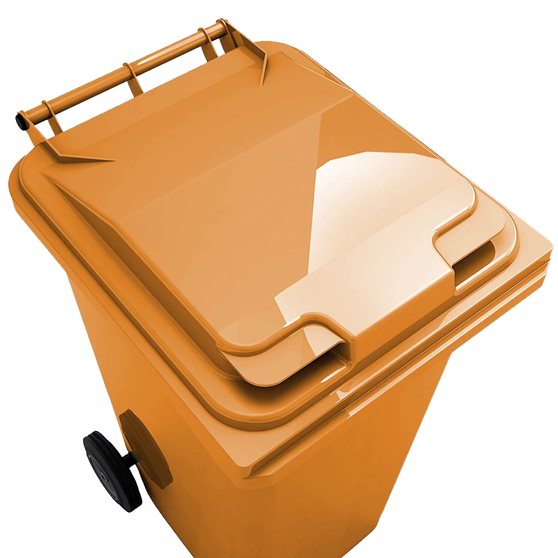 Контейнер 240л производится методом литья под высоким давлением из высококачественного полимерного сырья – ПЭНД (первичный полиэтилен низкого давления). Это позволяет эксплуатировать мусорный бак при температур от -40 до +50 градусов С, что очень актуально для российских климатических условий.
