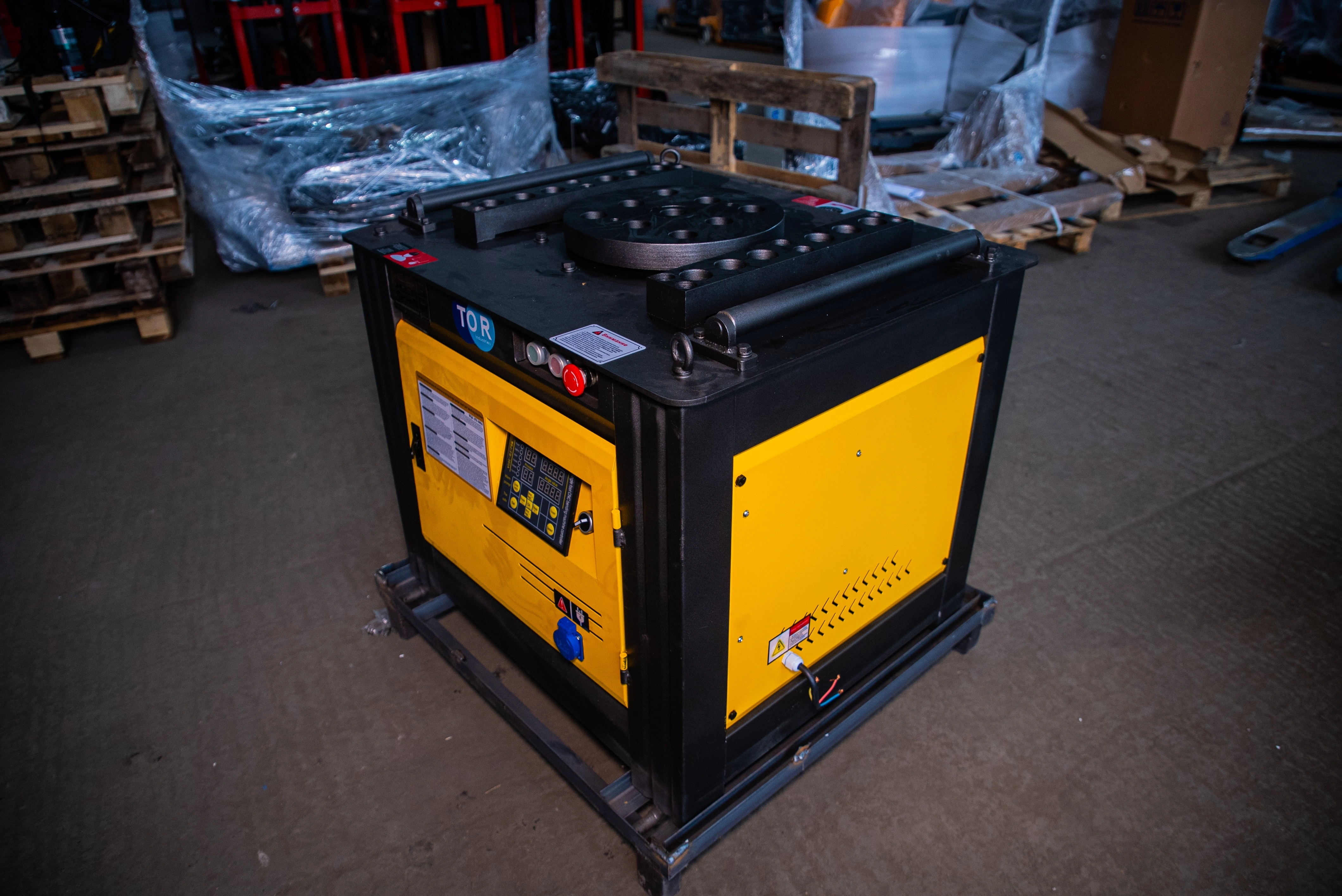 TOR GW40С - цифровая точность, автоматизация и надёжность в гибке арматуры для современного строительства. Станок для гибки арматуры TOR GW40С - профессиональное оборудование с цифровым управлением для высокоточной обработки арматуры диаметром до 40 мм. Мощность 3 кВт обеспечивает стабильную работу даже при интенсивной эксплуатации. Система ЧПУ позволяет программировать до 99 профилей гибки, автоматически регулировать параметры и сохранять настройки для повторяющихся операций. Интегрированный автоматический доводчик гарантирует точное завершение гибки без ручной корректировки. Прочная стальная конструкция и сенсорная панель управления делают станок незаменимым инструментом в условиях строительной площадки или цеха. ! Цифровое управление ЧПУ - программируемые профили гибки, автоматическое запоминание настроек, индивидуальные программы для каждого типа арматуры ! Максимальный диаметр арматуры (ГОСТ 5781-82 и 10884-94): А1 - 40 мм, А3 - 32 мм, HRB400 до 28 мм ! Встроенный таймер циклов - автоматическое отображение количества выполненных гибок ! Предустановка углов - 5–180° с точностью ±0,5° ! Сенсорная панель управления - интуитивные настройки, подсветка, многоязычный интерфейс ! В комплекте набор гибочной оснастки для круглой арматуры диаметром 40/32 мм Где используется? - На строительных объектах для гибки арматуры в монолитном бетоне - В железобетонных цехах и на заводах ЖБИ - При возведении мостов, дорог и крупных промышленных объектов - Для производства каркасов и армирующих конструкций с высокой точностью - В условиях, где требуется серийная гибка арматуры диаметром 40/32 мм Основные преимущества: - ЧПУ-управление - полная автоматизация процесса, сокращение брака до 95% по сравнению с ручными станками - Мощность 3 кВт - надёжная работа с арматурой диаметром до 40 мм - Программируемый доводчик - автоматическое завершение гибки с заданным углом без ручной корректировки - Система сохранения профилей - до 99 предустановленных программ для быстрого переключения между типами работ - Высокая производительность - до 7–9 гибок в минуту в зависимости от диаметра арматуры - Прочная стальная рама - выдерживает интенсивную эксплуатацию, не деформируется - Сенсорная панель управления - интуитивный интерфейс, минимальное обучение оператора - Надёжная система торможения - исключает перекручивание и повреждение заготовки - Компактность - удобная установка даже в условиях ограниченного пространства