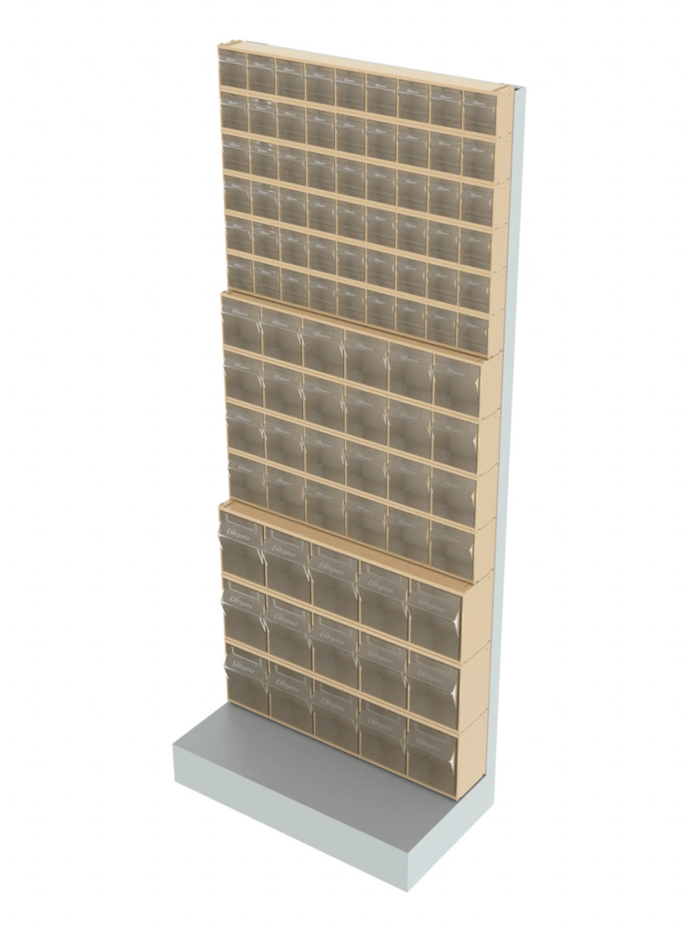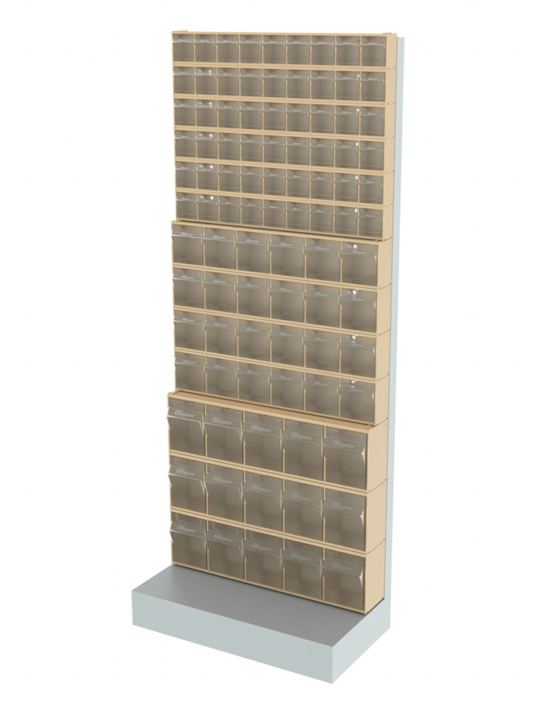 Стойка бежевая напольная Стелла-техник 403-06-04-03-B (610х325х1500) представляет собой удобную систему хранения на основе откидных коробов. Стойка подойдет для выставочных залов, магазинов, офисов, складов. Комплектация: Рама FOX (610х325х1500) V403 напольная односторонняя с основанием - 1 шт.; Короб откидной Стелла-техник F-600-9 , 600х68х78мм, 9 ячеек, красный, прозрачный - 6 шт.; Короб откидной Стелла-техник F-600-6 , 600х96х112мм, 6 ячеек, красный, прозрачный – 4 шт.; Короб откидной Стелла-техник F-600-5 , 600х140х168мм, 5 ячеек, красный, прозрачный – 3 шт.; Упаковка. Преимущества: Металлическое основание; Значительная устойчивость; Хорошая вместимость; Длительный срок службы.