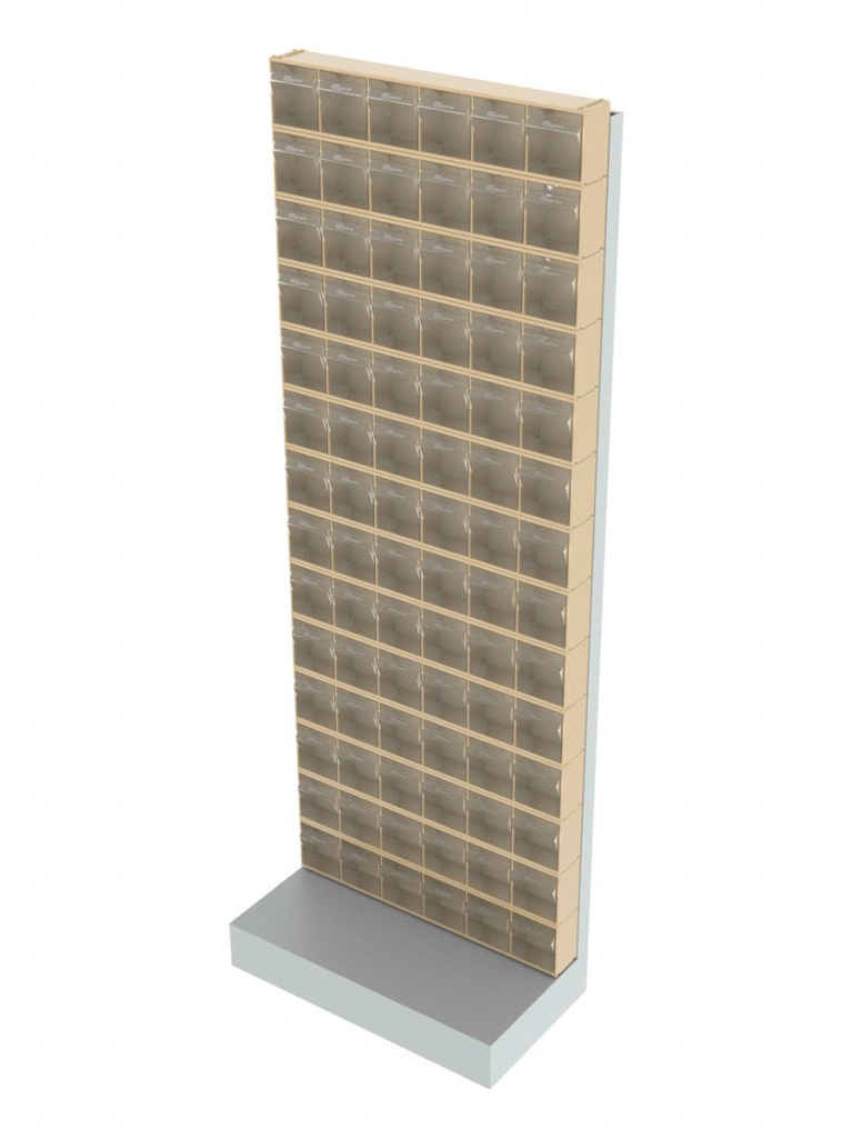 Стойка бежевая напольная Стелла-техник 404-00-14-00-B (610х325х1650) представляет собой удобную систему хранения, на основе откидных коробов. Стойка подойдет для выставочных залов, магазинов, офисов, складов. Комплектация: Рама FOX (610х325х1650) V404 напольная односторонняя с основанием - 1 шт.; Короб откидной Стелла-техник F-600-6 , 600х96х112мм, 6 ячеек, красный, прозрачный – 14 шт.; Упаковка. Преимущества: Металлическое основание; Значительная устойчивость; Хорошая вместимость; Длительный срок службы.