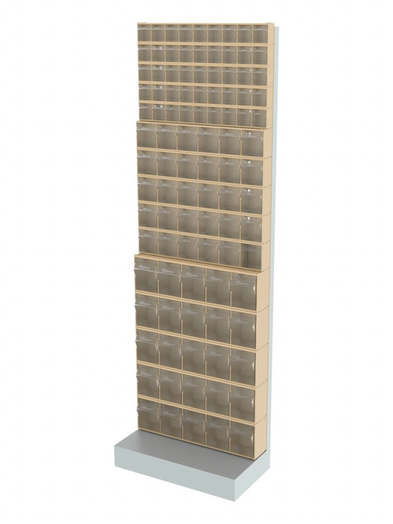 Стойка бежевая напольная Стелла-техник 405-05-05-05-B (610х325х1850) представляет собой удобную систему хранения на основе откидных коробов. Стойка подойдет для выставочных залов, магазинов, офисов, складов. Комплектация: Рама FOX (610х325х1850) V405 напольная односторонняя с основанием - 1 шт.; Короб откидной Стелла-техник F-600-9 , 600х68х78мм, 9 ячеек, красный, прозрачный -5 шт.; Короб откидной Стелла-техник F-600-6 , 600х96х112мм, 6 ячеек, красный, прозрачный – 5 шт.; Короб откидной Стелла-техник F-600-5 , 600х140х168мм, 5 ячеек, красный, прозрачный – 5 шт.; Упаковка. Преимущества: Металлическое основание; Значительная устойчивость; Хорошая вместимость; Длительный срок службы.