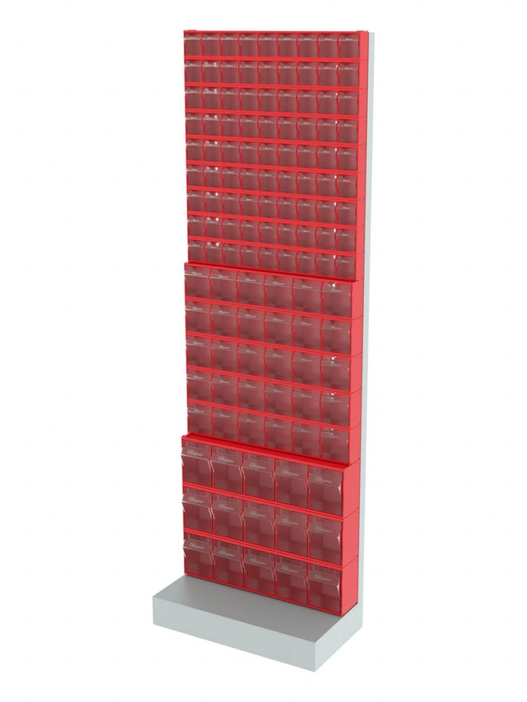 Стойка напольная Стелла-техник 405-09-05-03 (610х325х1850) представляет собой удобную систему хранения на основе откидных коробов. Стойка подойдет для выставочных залов, магазинов, офисов, складов. Комплектация: Рама FOX (610х325х1850) V405 напольная односторонняя с основанием - 1 шт.; Короб откидной Стелла-техник F-600-9 , 600х68х78мм, 9 ячеек, красный, прозрачный - 9 шт.; Короб откидной Стелла-техник F-600-6 , 600х96х112мм, 6 ячеек, красный, прозрачный – 5 шт.; Короб откидной Стелла-техник F-600-5 , 600х140х168мм, 5 ячеек, красный, прозрачный – 3 шт.; Упаковка. Преимущества: Металлическое основание; Значительная устойчивость; Хорошая вместимость; Длительный срок службы.