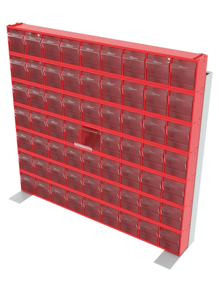 Стойка настенная/настольная Стелла-техник 401-07-00-00 (610х150х500) представляет собой удобную систему хранения, которая подойдет для выставочных залов, магазинов, офисов, складов. Основание можно установить на стол или закрепить на стену, привернув его анкерными болтами или саморезами (в комплект не входят). В комплект стойки входит: Рама FOX (610х150х500) V401 - 1 шт.; Короб откидной Стелла-техник F-600-9 , 600х68х78мм, 9 ячеек, красный, прозрачный - 7 шт.; Упаковка. Преимущества стойки: Металлическое основание; Значительная устойчивость; Хорошая вместимость; Длительный срок службы.