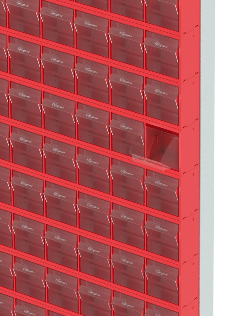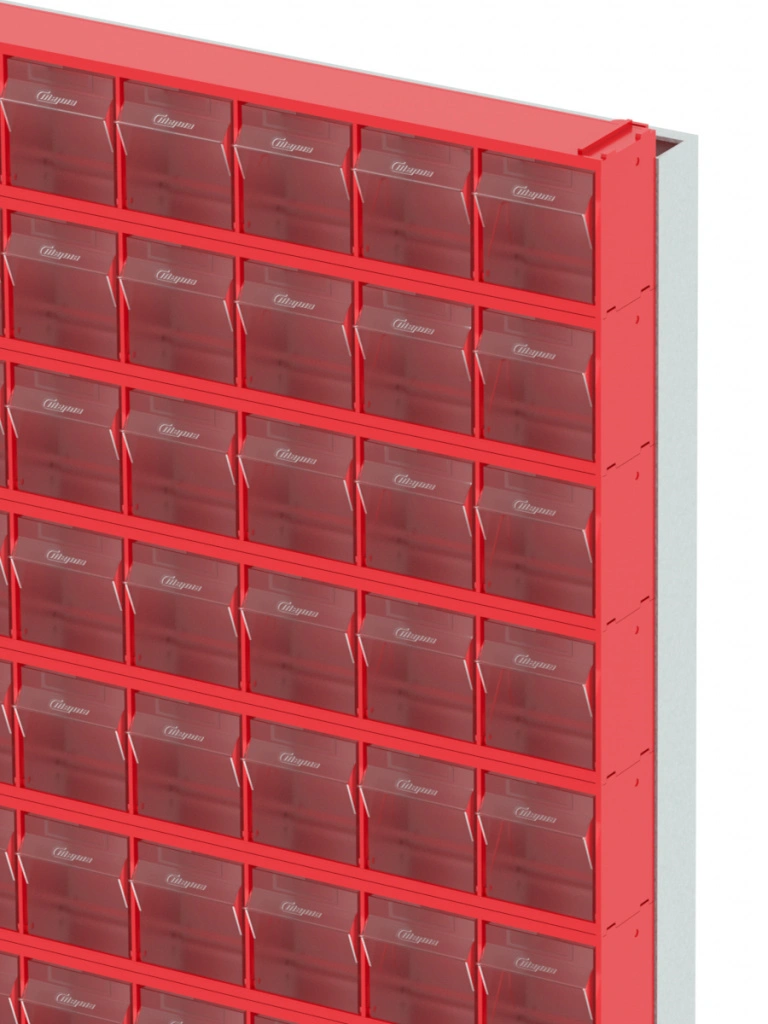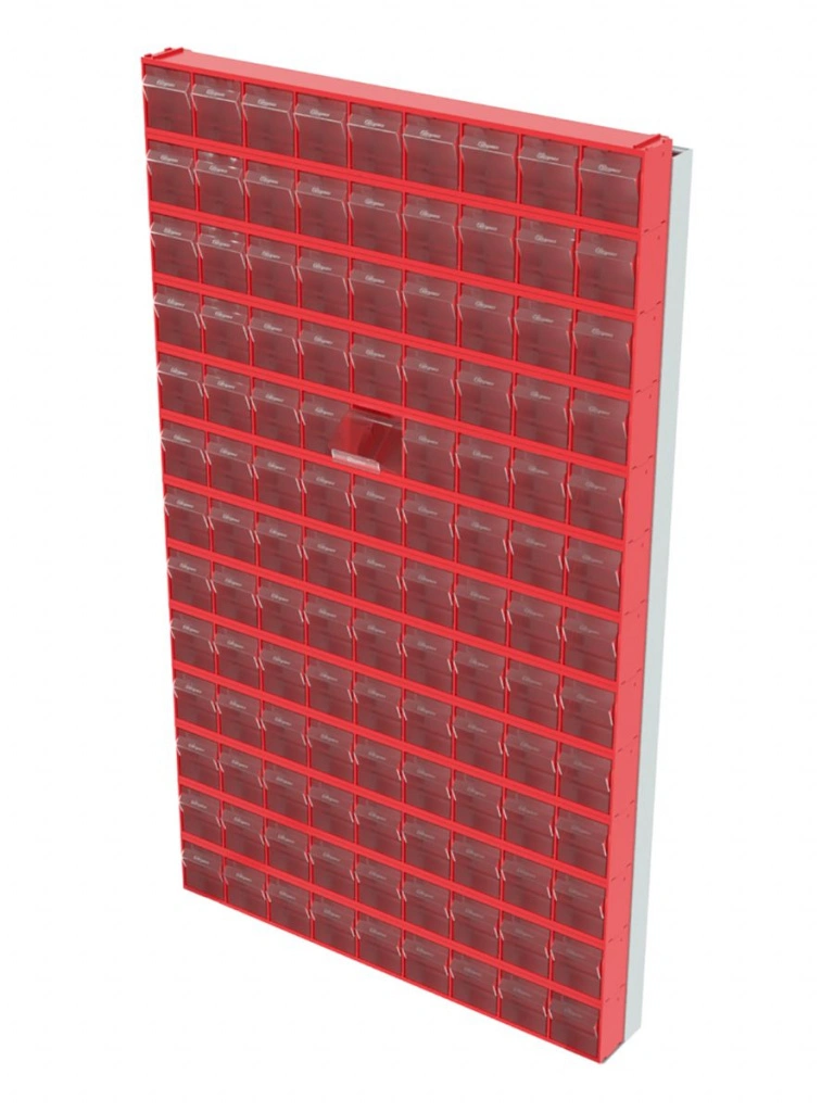 Стойка настенная Стелла-техник 402-13-00-00 (610х40х1000) представляет собой удобную систему хранения на основе откидных коробов, которая подойдет для использования в выставочных залах, магазинах, складах. Стойка крепится на стену при помощи саморезов или анкерных болтов (крепеж не входит в комплект и подбирается под уровень загруженности стойки). Комплектация: Рама FOX (610х40х1000) V402 - 1 шт.; Короб откидной Стелла-техник F-600-9 , 600х68х78мм, 9 ячеек, красный, прозрачный -13 шт.; Упаковка. Преимущества: Металлическое основание; Значительная устойчивость; Хорошая вместимость; Длительный срок службы.