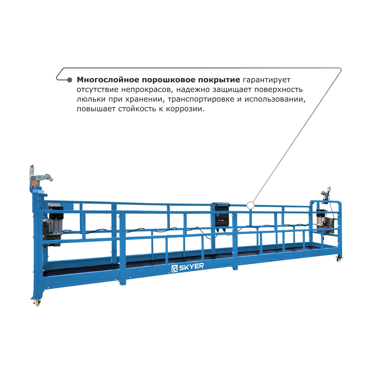 Строительная люлька SKYER SKR6 — это прочное, безопасное, многофункциональное строительное оборудование с тщательно продуманной конструкцией. Платформа имеет 3 секции и рассчитана на подъем сразу трех рабочих, а также необходимых для проведения работ инструментов и материалов. Максимальная грузоподъемность модели составляет 630 кг.