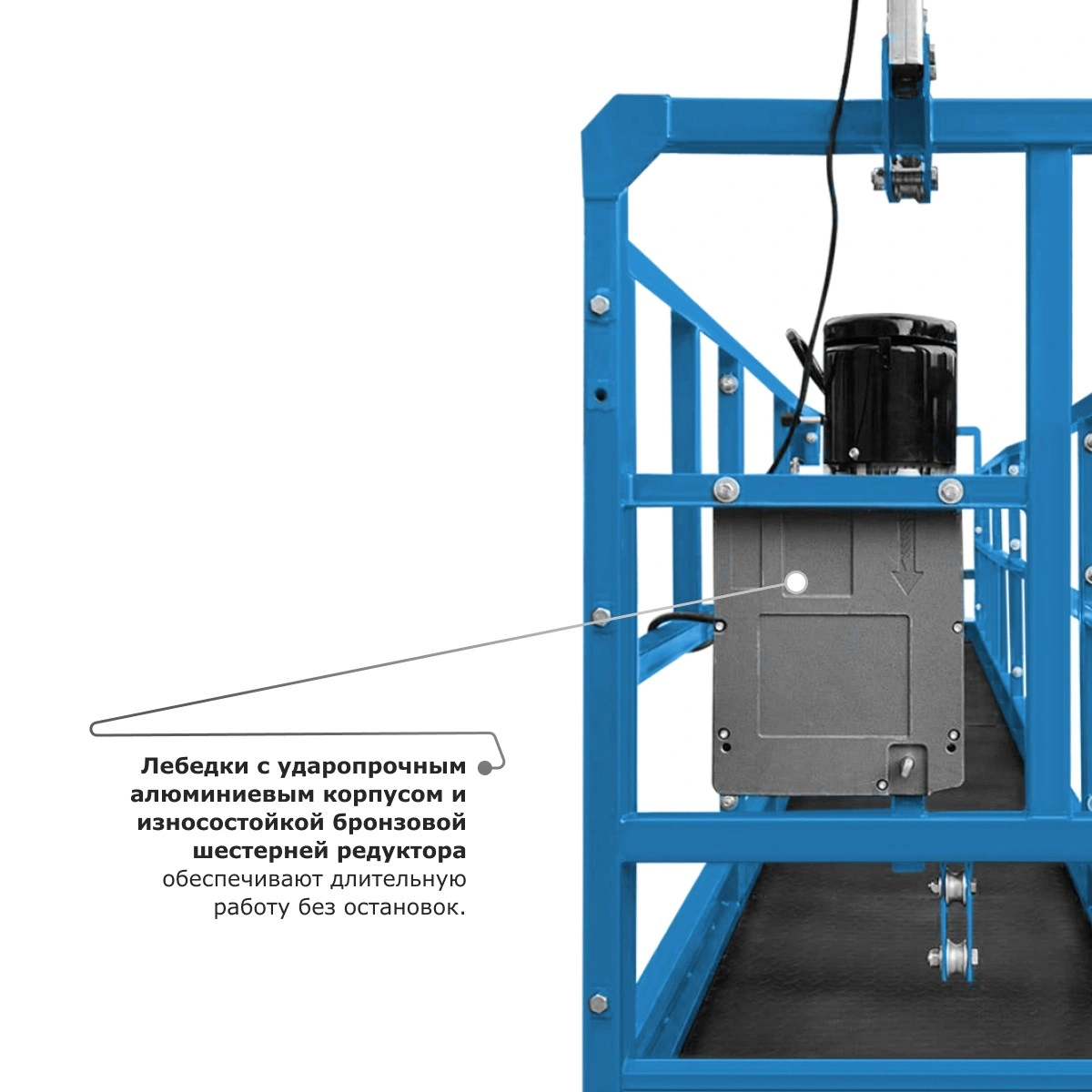 - Усиленные дополнительными ребрами жесткости консоли гарантируют надежную и безопасную работу люльки даже при интенсивном использовании.